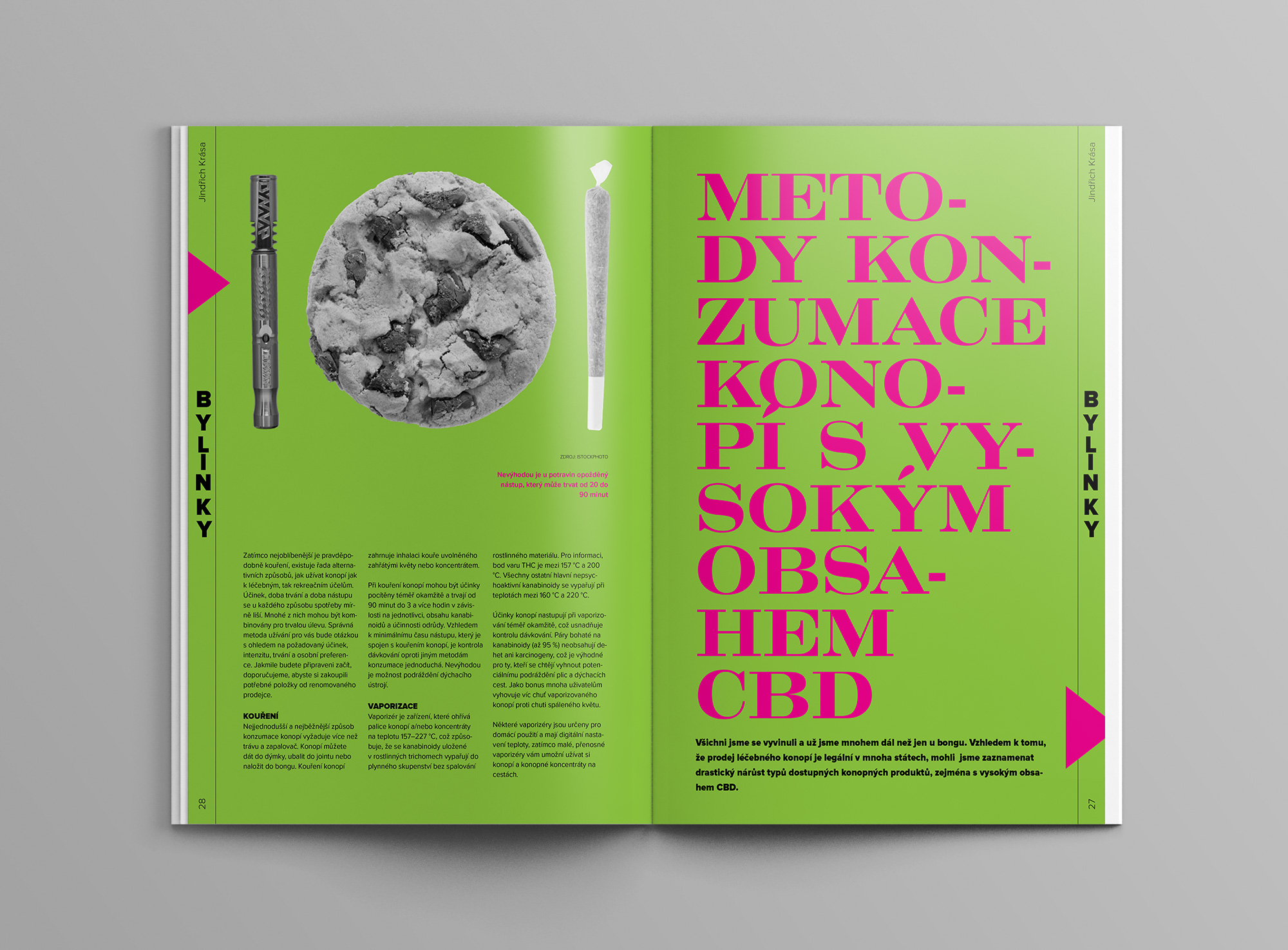 Design tištěného měsíčníku ROOTS, který se zabývá problematikou konopí, nejčastěji ve vztahu ke zdraví.